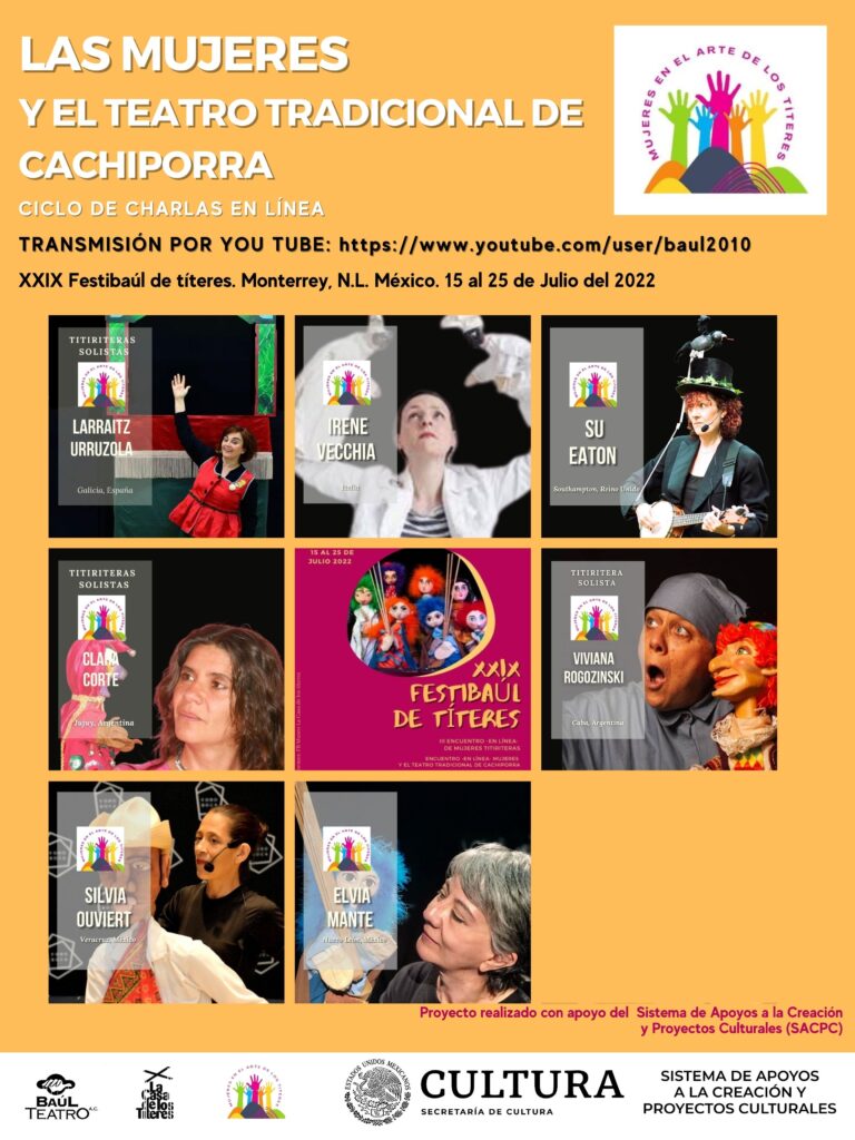 Clara Corte es titiritera solista y además titiritera de cachiporra. Su visión y aportaciones a la técnica y a nuestra historia común se manifiestan en este video de su participación en el encuentro de mujeres y los títeres de cachiporra. Iniciativa de Elvia Mante, celebrado en Julio del 2022 como una actividad del XXIX Festibaúl de Títeres en Monterrey, N.L., México