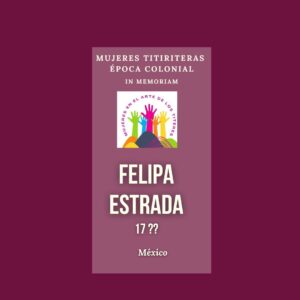 En la tesis también podemos encontrar, además de la preciosa relatoría sobre las diversiones de la época, una relación de nombres de maromeros (y maromeras) y de titiriteros (y titiriteras), desde 1673 hasta 1818, de la cual rescato los siguientes así como los lugares donde se presentaban. Todas ellas pueden ser nuestros referentes a la hora de hablar de la participación de las mujeres en el arte de los títeres.